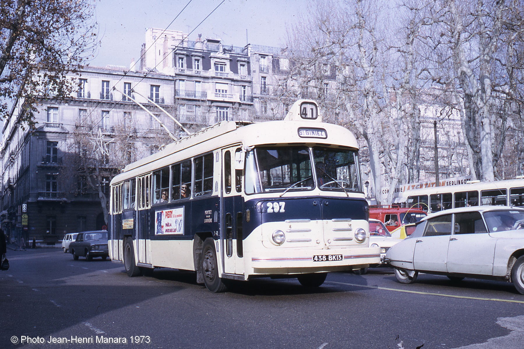 | 1964 - Trolleybus Vétra VCR N°96 desservant la ligne N°61 Barré en provenance du plateau Bompard et à destination du Vieux-Port | ||